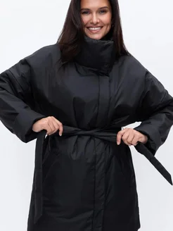 Куртка демисезонная удлиненная утепленная с поясом еврозима
