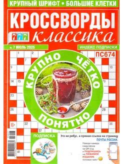 КРОССВОРДЫ КЛАССИКА №07 2025 классические кроссворды крупно