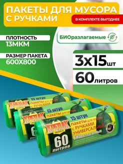 Мусорные мешки 60 л 60 шт с ручками пакеты майка прочные