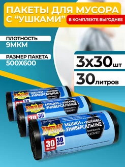 Мусорные пакеты с ушками 30 л 90 шт прочные