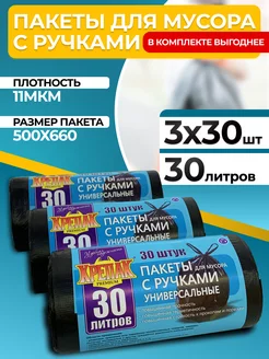 Мусорные мешки с ручками 30 л 90 шт прочные