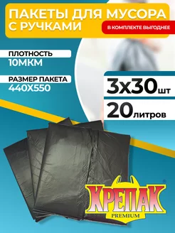 Мешки для мусора 20 л 90 шт ПНД 10 мкм, с ручками, прочные