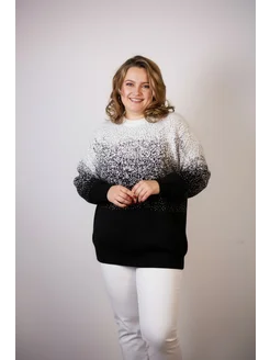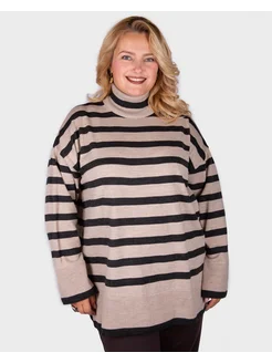 Джемпер водолазка в полоску свитер больших размеров оверсайз