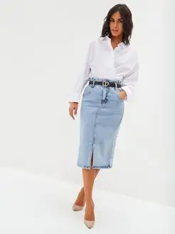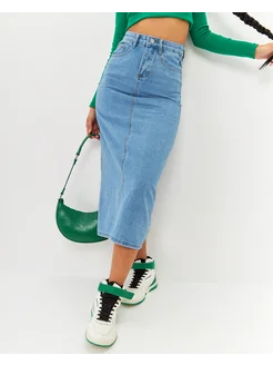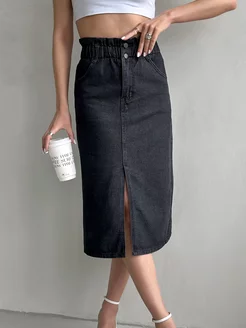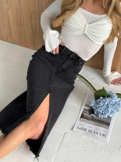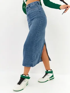 Юбка джинсовая карандаш миди с разрезом спереди