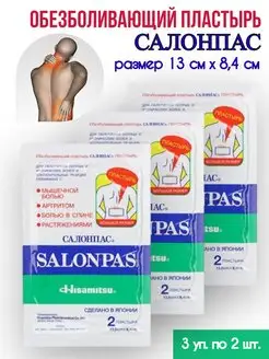 Salonpas Пластырь обезболивающий 13,0х8,4см 3 уп. по 2 шт