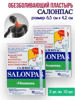 Salonpas Пластырь обезболивающий 6,5х4,2см 2 уп. по 10 шт
