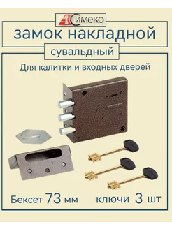 Замок гаражный накладной сувальдный БИФ‑0030, 3 ключа бронза