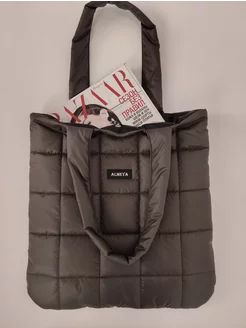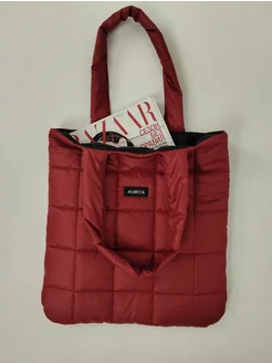 Сумка стёганая дутая болоньевая шоппер на плечо
