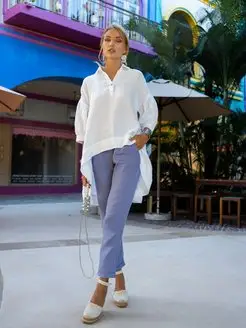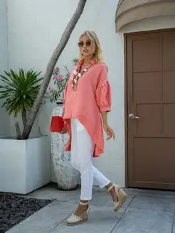 Льняная рубашка женская бохо оверсайз