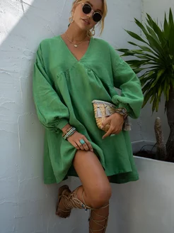Платье бохо женское льняное 100% лён