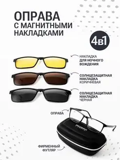 Очки 4в1 с оправой и магнитными солцезащитными накладками