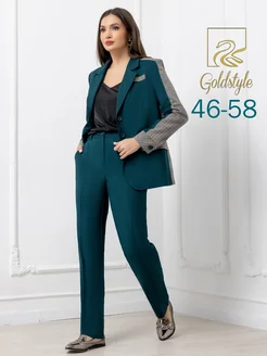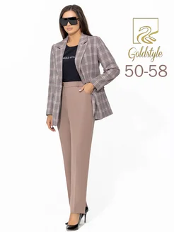 Брючный костюм деловой пиджак в клетку
