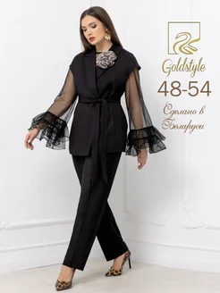 Брючный костюм с жилетом деловой