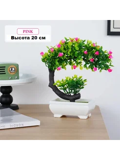 Бонсай искусственное дерево, искусственные цветы, розовый