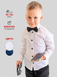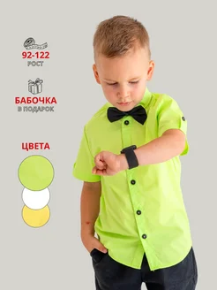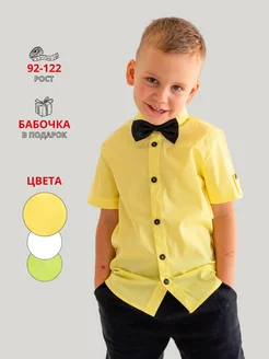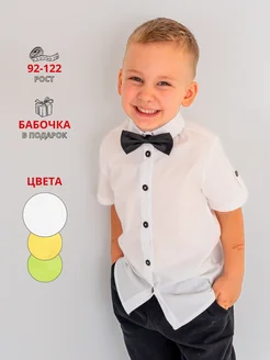 Рубашка белая нарядная с коротким рукавом и бабочкой