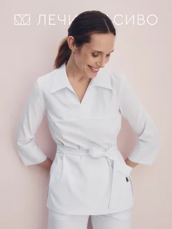 Медицинская рубашка на запах с рукавом 3 4