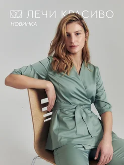 Медицинская рубашка на запах с рукавом 3 4 костюм