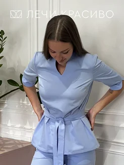 Медицинская блузка рубашка с фигурной горловиной
