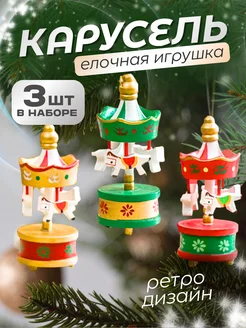 Набор новогодних игрушек деревянных Карусель 3 штуки