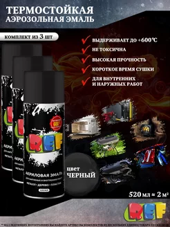 Аэрозольная краска, термостойкая, до 600C, черный, 3 шт