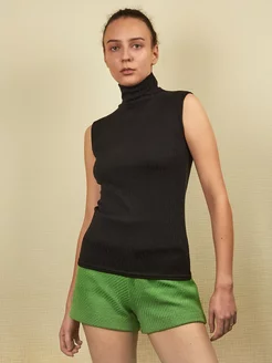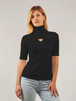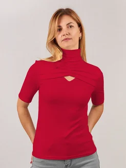 Водолазка с коротким рукавом, трикотажная, в рубчик