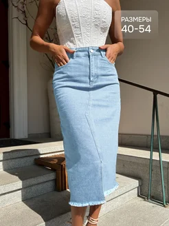 Юбка джинсовая миди с разрезом