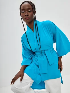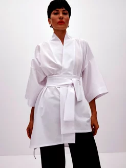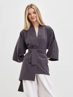 Жакет Кимоно базовый пиджак с поясом летний