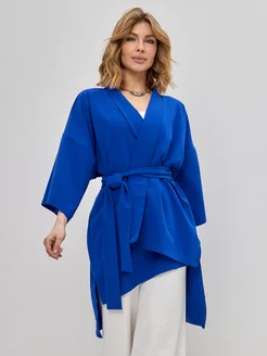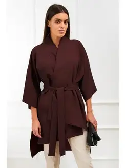 Удлиненный жакет на запах базовое кимоно оверсайз на поясе