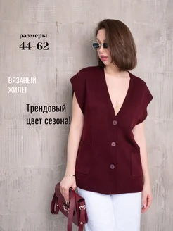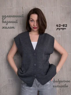 Жилетка вязаная удлиненная больших размеров безрукавка