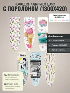 Чехол для гладильной доски с поролоном (1300х420) микс