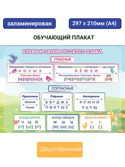 Плакат учебный "Буквы и звуки русского языка"