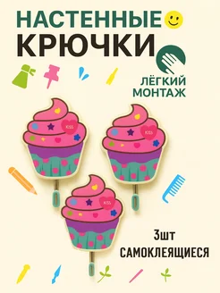 Крючки настенные детские на липучке, 3шт (кексы)