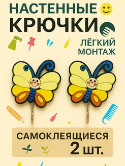 Крючки настенные детские на липучке, 2шт (бабочки)
