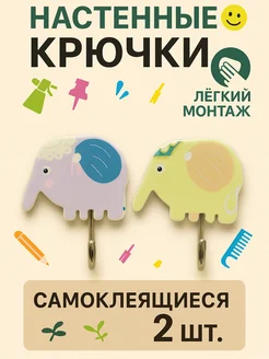 Крючки настенные детские на липучке, 2шт (слоны №5)