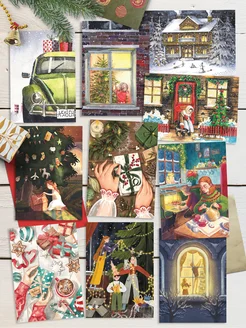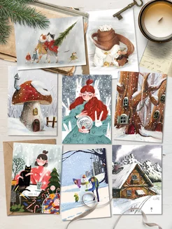 Новогодние праздничные открытки в подарок Зимние, 10 шт