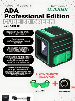 Комплект ADA Cube 3D Green Prof Edition, очки, рулетка
