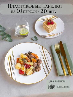 Тарелки одноразовые для праздника пластиковые набор 20 шт