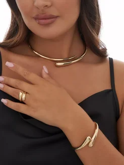 Набор - колье обруч серьги браслет с искусственным жемчугом