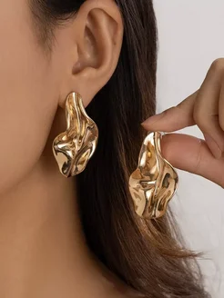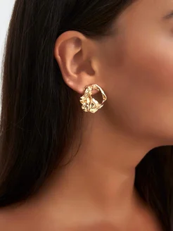 Серьги бижутерия крупные объемные мятые золотистые пусеты
