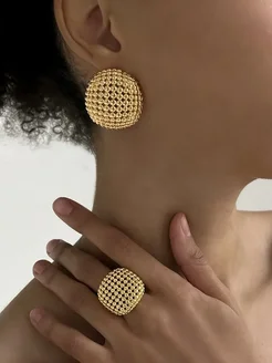 Набор украшений - серьги и кольцо крупные круглые золотистые