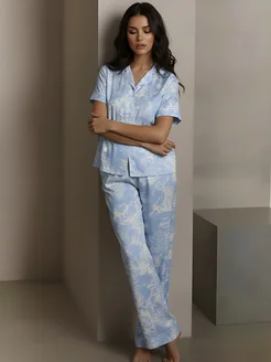 Новогодняя пижама со штанами и рубашкой шелковая Pinterest