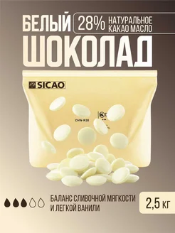 Шоколад белый кондитерский 28% Сикао, 2,5 кг, CHW-R28-557