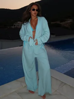 Костюм летний с брюками и рубашкой в пижамном стиле