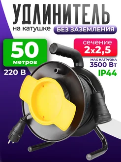 Удлинитель на катушке 50 метров ПВС уличный 2x2,5 мм