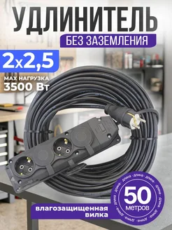 Удлинитель уличный 50 м ПВС 2х2,5 силовой на 4 розетки