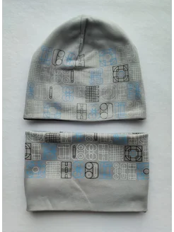 Весенняя шапка для мальчика двойная со снудом хлопок