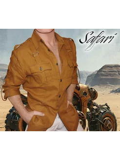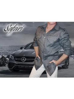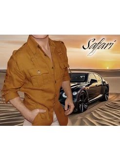 Рубашка льняная в стиле "сафари" с длинным рукавом