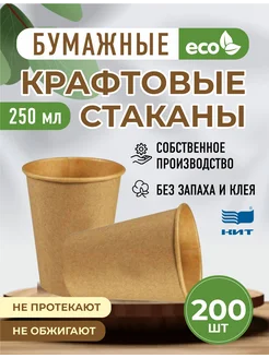 Стаканы одноразовые бумажные 250 мл крафтовые 200 шт