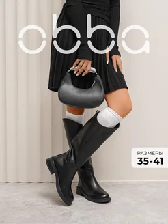 Кожаные сапоги трубы на низкой шпильке демисезонные