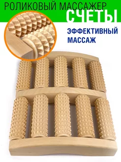 Деревянный массажер для ног и стоп роликовый счеты